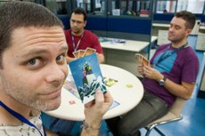 "Regras elegantes, design elaborado e a própria atitude dos jogadores são as principais diferenças desses novos design games para os antigos jogos de tabuleiro dos nossos pais", define Rodrigo Urquiza (em primeiro plano), analista da UniSerpro.