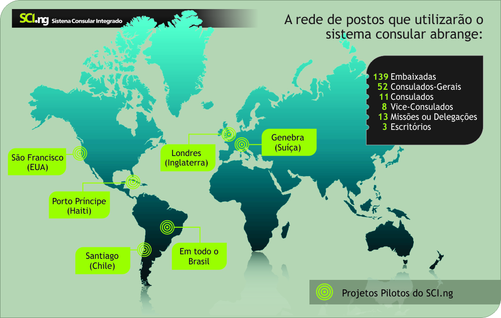 A primeira versão desse sistema foi lançada em 2009. Em novembro do ano passado, o Brasil iniciou o projeto-piloto da nova versão, o SCI-ng, nos postos consulares do país e em cinco repartições no exterior: Santiago (Chile), São Francisco (EUA), Londres (Inglaterra), Genebra (Suíça) e Porto Príncipe (Haiti).